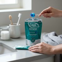 Discreet, revolutionary disposable mini toothbrush that allows you to clean your mouth on the go without toothpaste or water.
